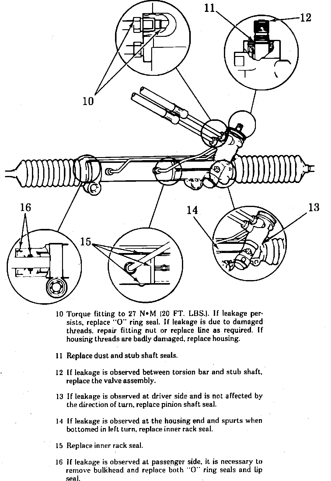 Fig. 27 Power Rack & Pinion Steering Gear Leak Diagnosis. Front Wheel Drive Except Beretta, Calais, Cavalier, Corsica, Grand Am, LeMans, Skyhawk, Skylark & Sunbird: