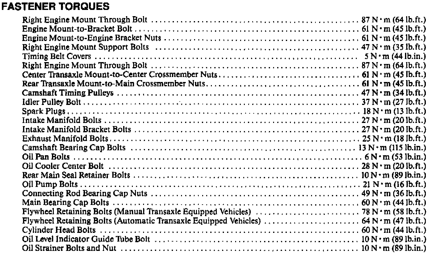 Torque Specifications: