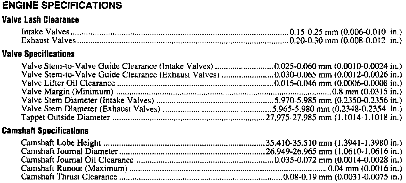Engine Specifications (continued):
