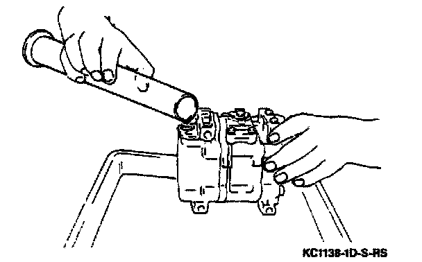 ^ Measure the quantity of oil drained from compressor; that amount of oil should be replaced after compressor is re-assembled.