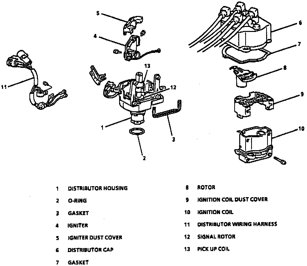 The distributor is used to direct high voltage to the appropriate spark plug. The unit also houses the cam position and engine speed (crank angle) sensors, ignition coil and igniter.