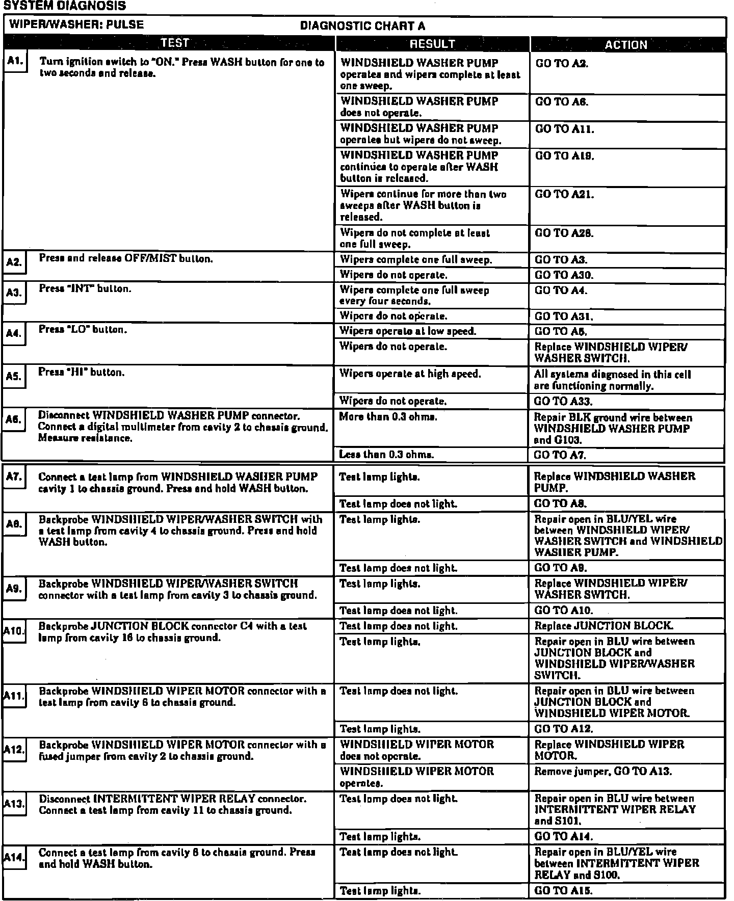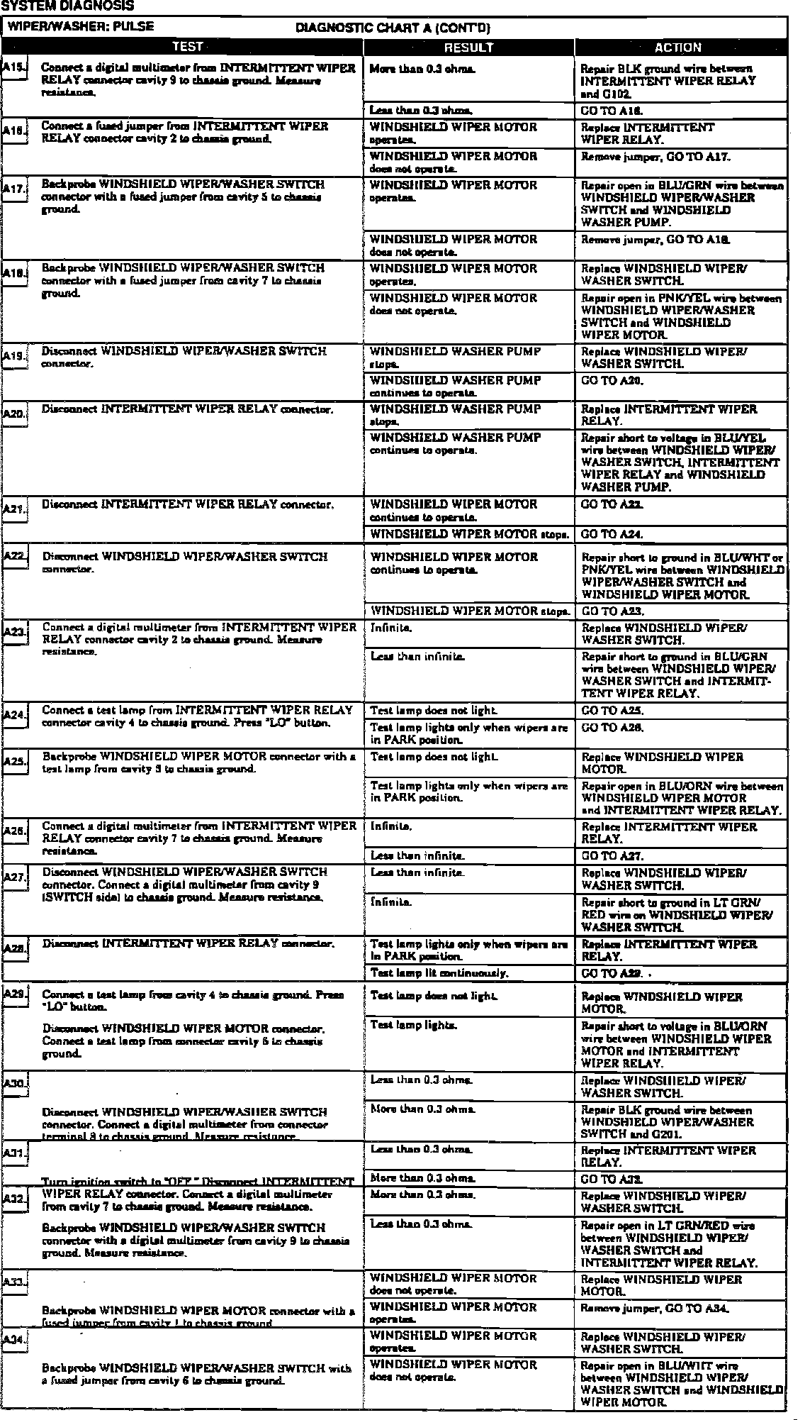 Fig. 36 System Diagnosis Chart (Part 2 Of 2). W/pulse Wiper: