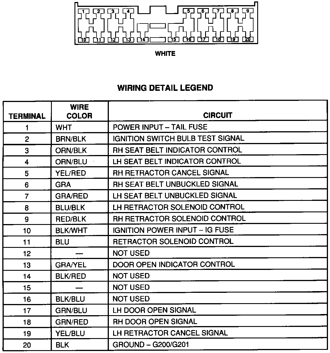 Automatic Seat Belts: Hardtop, Controller Connector: