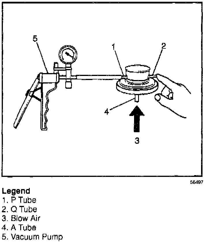 5. Blow air into tube "A." You should not be able to obtain vacuum on pump.