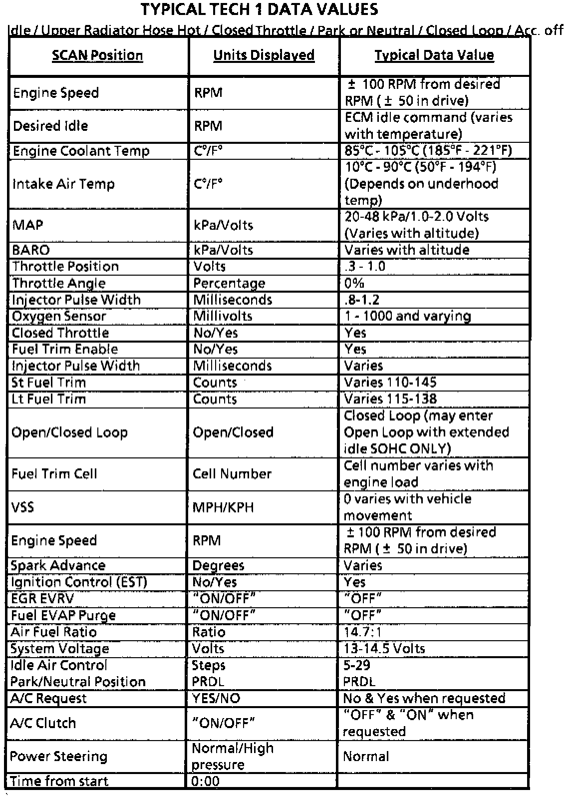 Scan Tool Data List