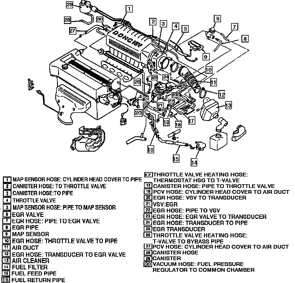6. Remove two canister pipes and MAP sensor pipe from common chamber, then canister pipe support bracket.