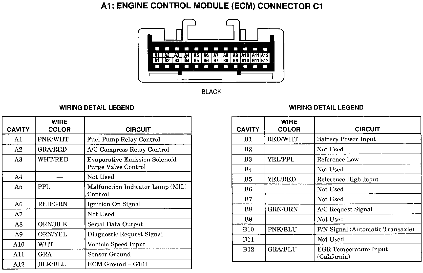 Engine Controls 1.8L VIN 8 ENGINE CONTROL MODULE CONNECTOR C1: