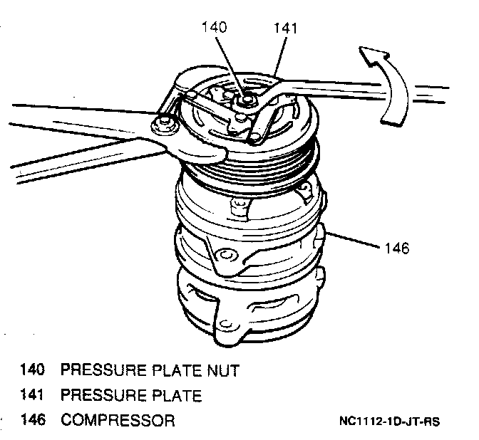 1. Pressure plate nut and washer from compressor drive shaft.