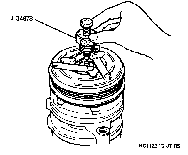 2. Pressure plate from compressor drive shaft using a J 34878.