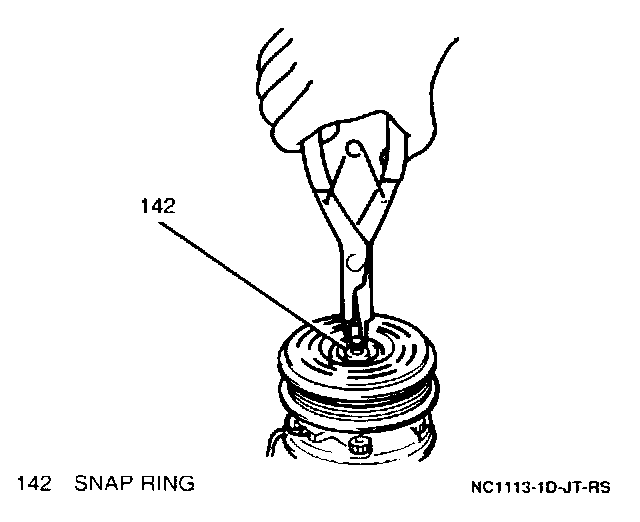 3. A/C compressor clutch pulley to compressor; secure with snap ring and shim.
