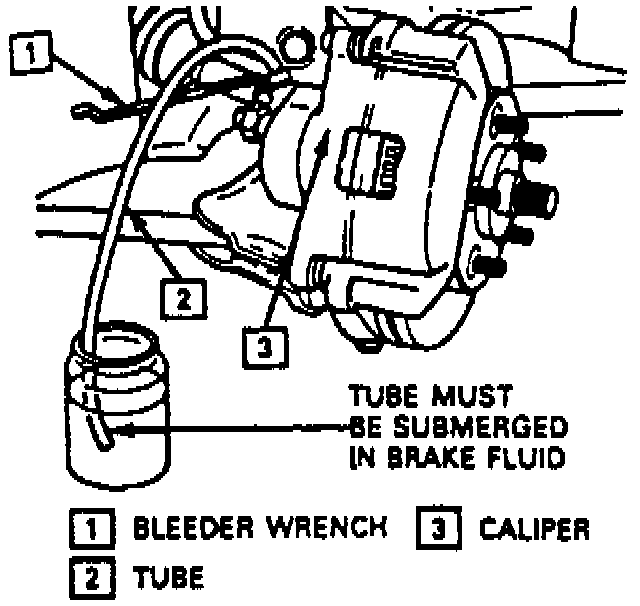 1. Loosen, then slightly retighten bleeder valves at all four wheels. Repair any broken, stripped or frozen valves at this time.