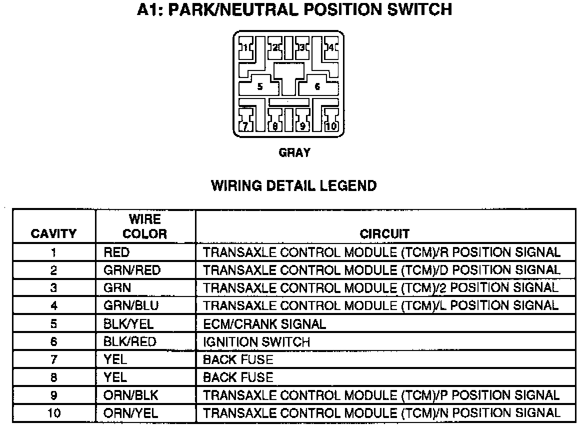 Transmission Position Sensor/Switch: Diagrams
