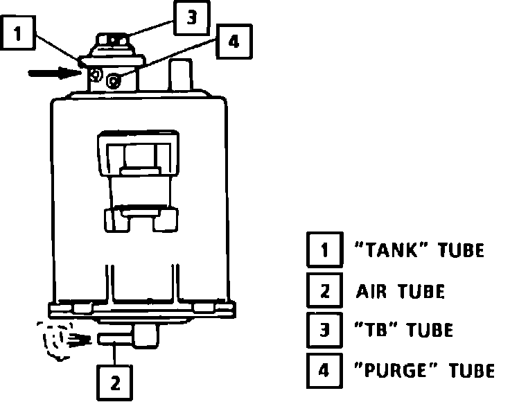 3. Apply 20" of vacuum to vacuum signal line while blowing air into purge tube, air should come out of the "TB" tube.