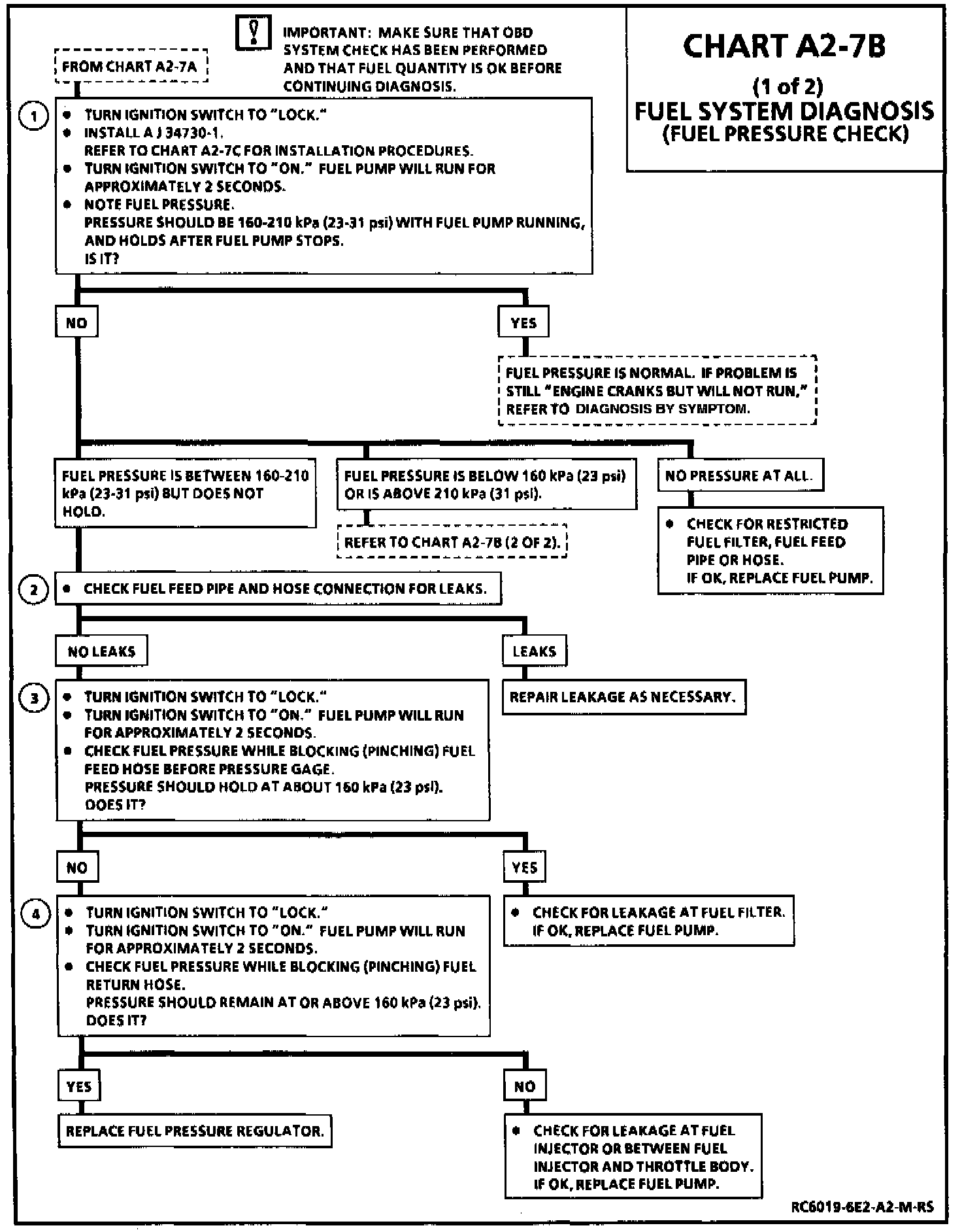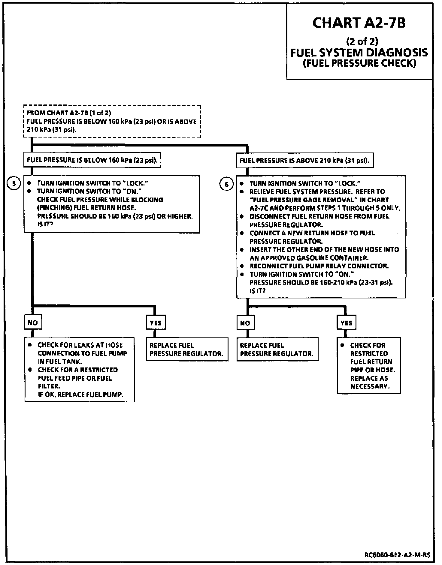 5. Checks for restricted fuel feed pipe, or fuel filter or for a faulty fuel pressure regulator.