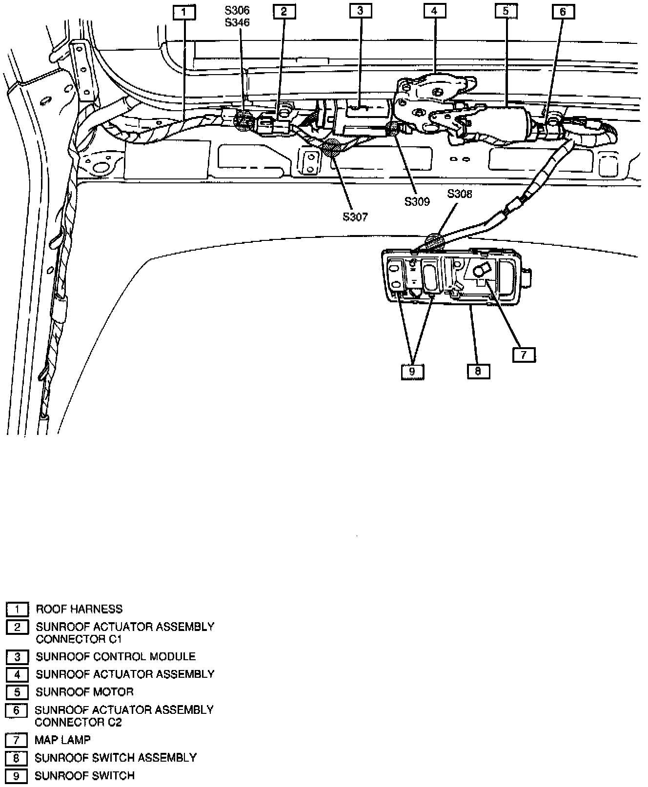 Figure A - Sunroof Wiring: