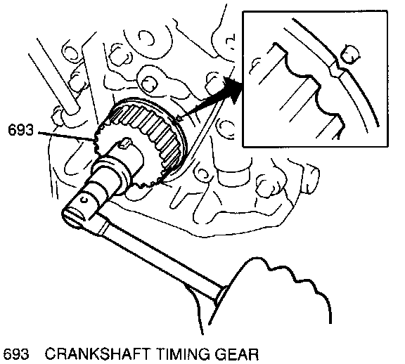 1. Camshaft and crankshaft timing gear aligning keyways on shafts.