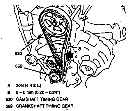 CAUTION: Do NOT turn crankshaft or camshaft independently after removal of timing belt. Binding or damage to engine components could result.