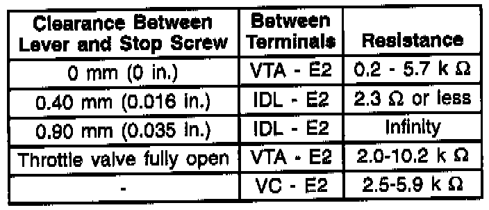Update to the TP Sensor Resistance Specifications, 1993-95 in Section 6E3-C1-9