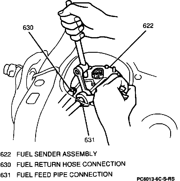 6. One nut and fuel feed hose from sender assembly.