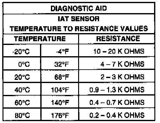 IAT Sensor Ohmic Values: