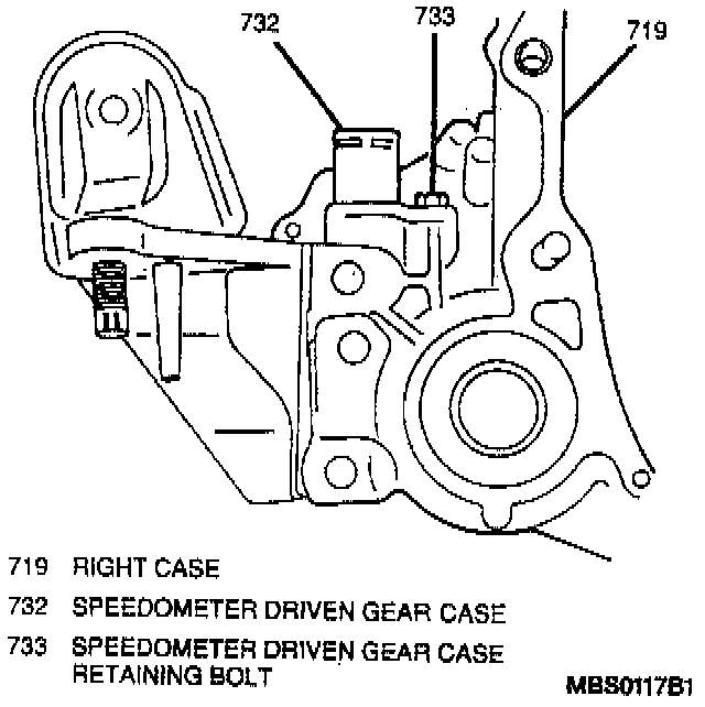 - Speedometer driven gear case retaining bolt to 6 N.m (53 lb. in.).