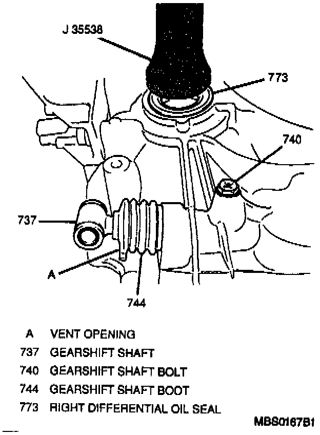 5. New right differential oil seal into the right case using a J 35538 and a hammer.