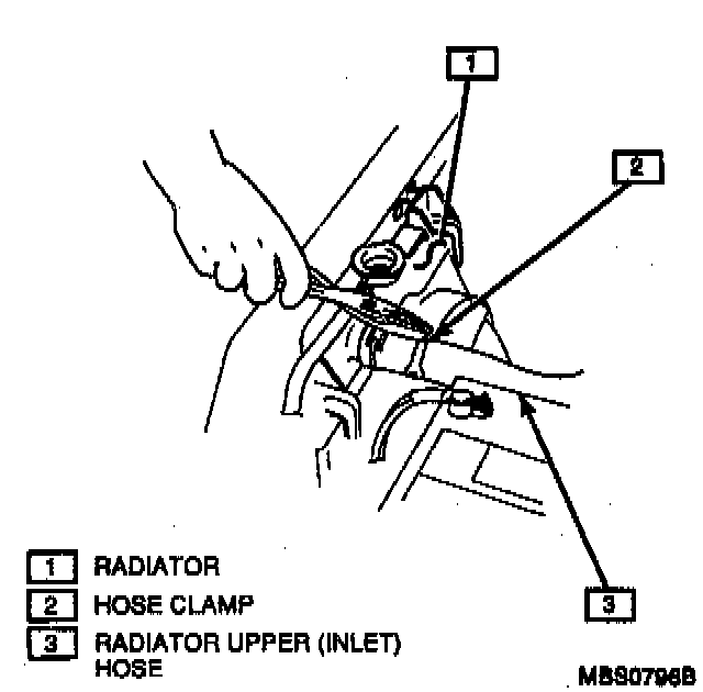 2. Upper radiator hose by releasing hose clamps at thermostat outlet and radiator.