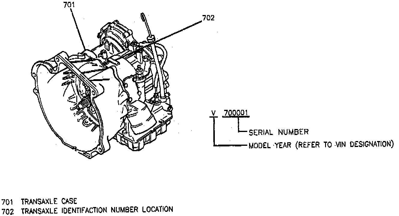 The automatic transaxle identification number is located on the top of the transaxle case next to the transaxle range switch. This seven digit number is stampped into-the case and refers to model year and serial number sequence. Additional transaxle identification information can be found on the service parts identification label. This label contains information on Regular Production Options (RPO) as well as standard and mandatory options. This label is affixed to the spare tire cover of each vehicle at the assembly plant.