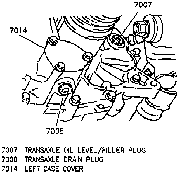 - Transaxle oil level. Oil level should be even with the bottom of the transaxle oil level/filler plug hole. If oil level is low, adjust oil level accordingly with Castrol (tm) Syntorq Transmission Fluid GM P/N 12346190, or equivalent.
