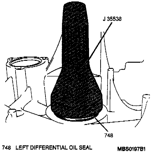 1. Left differential oil seal using a J 35538 and a hammer.