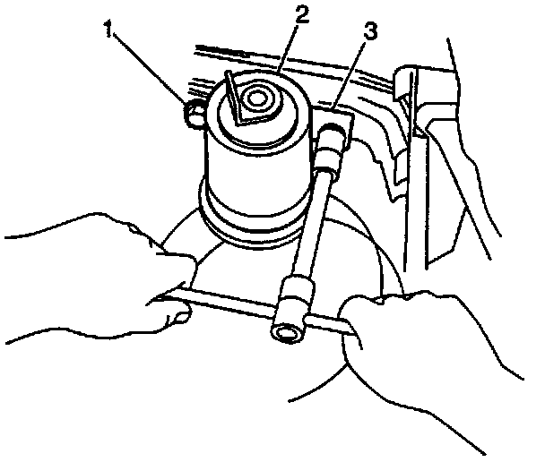7. Remove two bolts and fuel filter from fuel filter bracket.