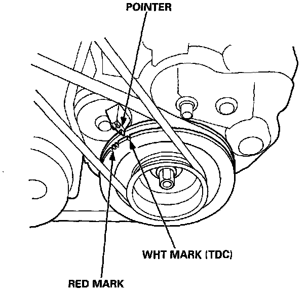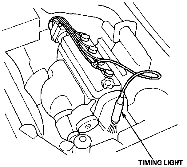 5. Connect a Timing Light to the No. 1 Ignition Wire. Point the light toward the Pointer on the Timing Belt Cover.