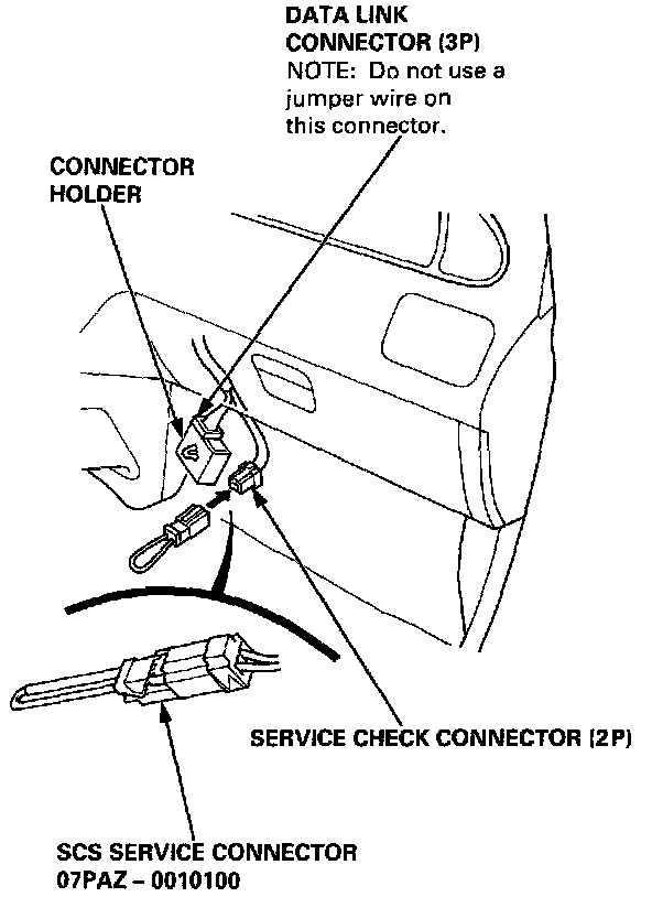 2. Remove the Connector Holder located behind the Glove Box, then remove the Service Check Connector from the Connector Holder.