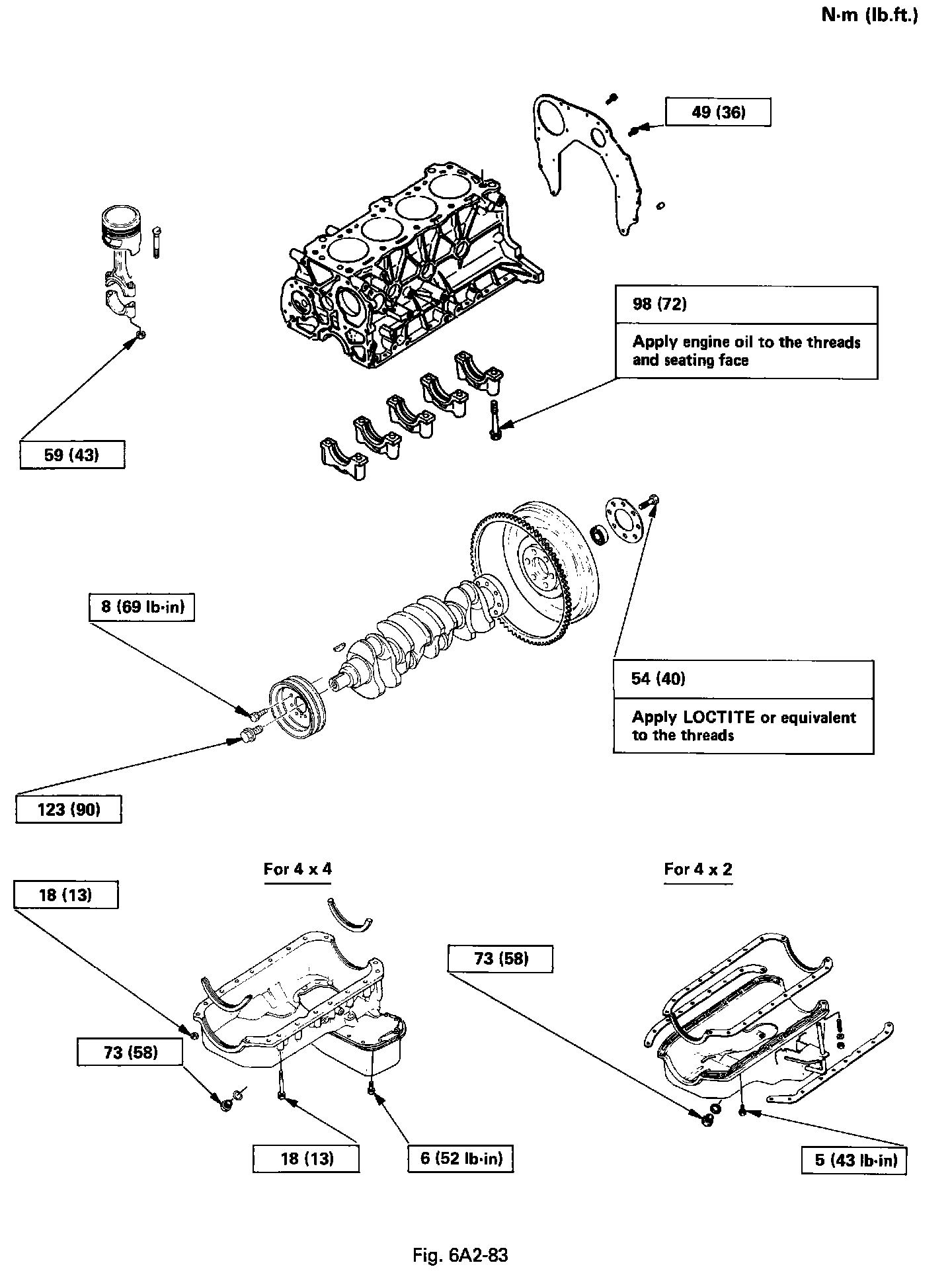 Crankshaft Bearing Cap, Connecting Rod Bearing Cap, Crankshaft Damper Pulley, Flywheel, and Oil Pan Torque Specifications