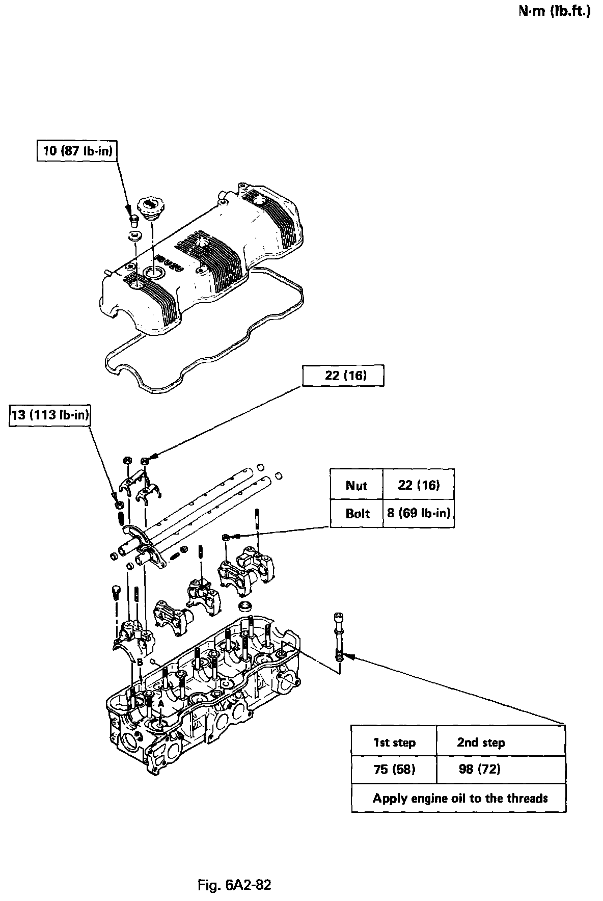 Cylinder Head Cover, Cylinder Head, and Rocker Arm Shaft Bracket Torque Specifications