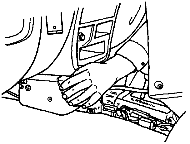 4. Remove the PCM front cover by using finger pressure to push inward at the side of the cover while simultaneously pulling the cover toward the rear.