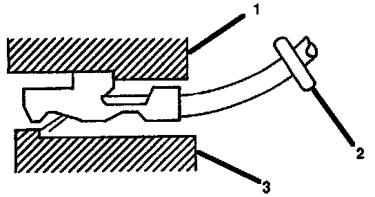2. Insert the J 35689 tool or equivalent (3) in order to release the terminal locking tang (2).