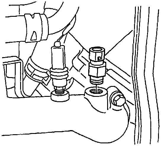 CAUTION: Care must be taken when handling the engine coolant temperature (ECT) sensor. Damage to the ECT sensor will affect proper operation of the fuel injection system.Removal