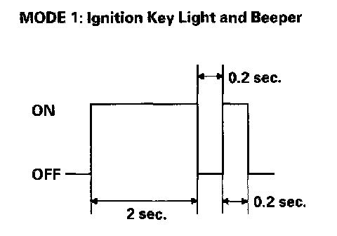 4. After about 5 seconds, the ignition key light should come on and the beeper should beep for 2 seconds, then go off for 0.2 second, then blink and deep for 0.2 second. This indicated that the system is in mode 1.