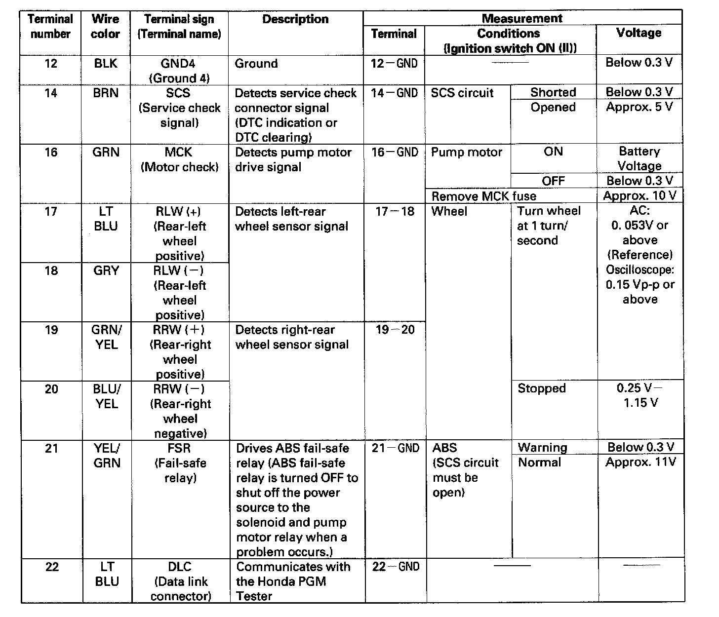 The ABS can be diagnosed with the Honda PGM Tester.