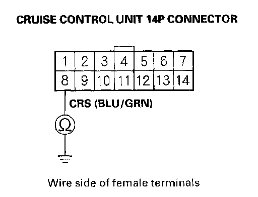 NO - Repair open in the wire between the PCM connector terminal A5 ('99-00, '02-03 models) or E17 ('01 model) and the cruise control unit 14P connector terminal No.8.