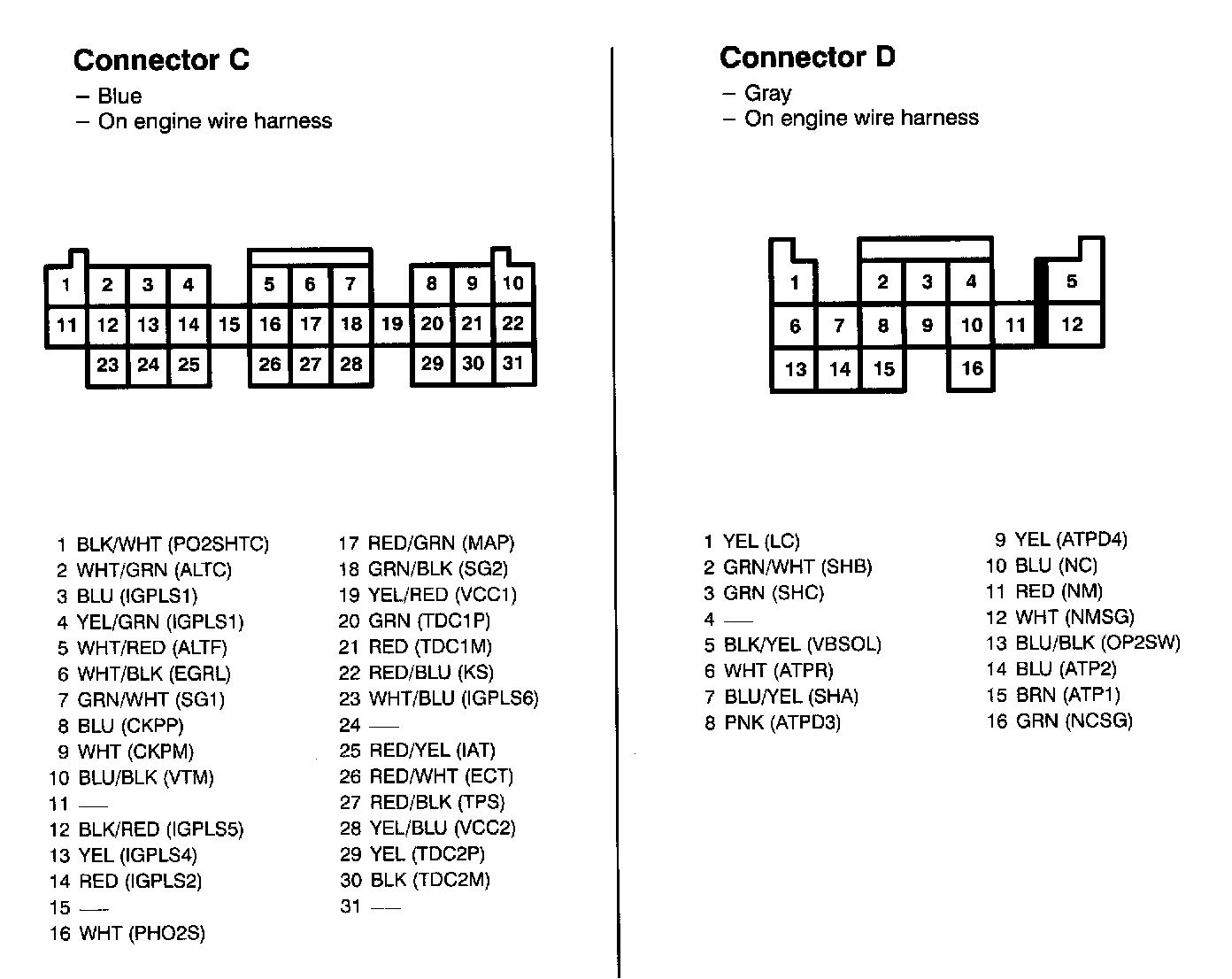 Connectors A, B, C, and D