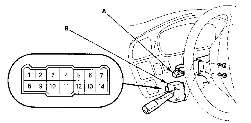 3. Disconnect the 14P connector (A) from the combination light switch (B).