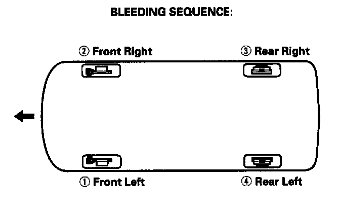 5. Repeat the procedure for each wheel in the sequence shown until air bubbles no longer appear in the fluid.
