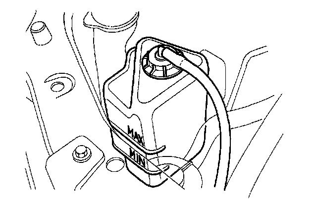 7. Remove, drain and reinstall the reservoir. Fill the tank halfway to the MAX mark with water, then up to the MAX mark with antifreeze.