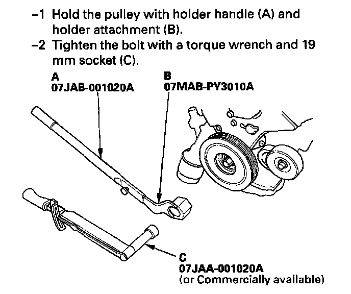 12. Install the crankshaft pulley, and tighten the bolt to 245 Nm (25.0 kgf.m, 181 ft. lbs.). Do not use an impact wrench.
