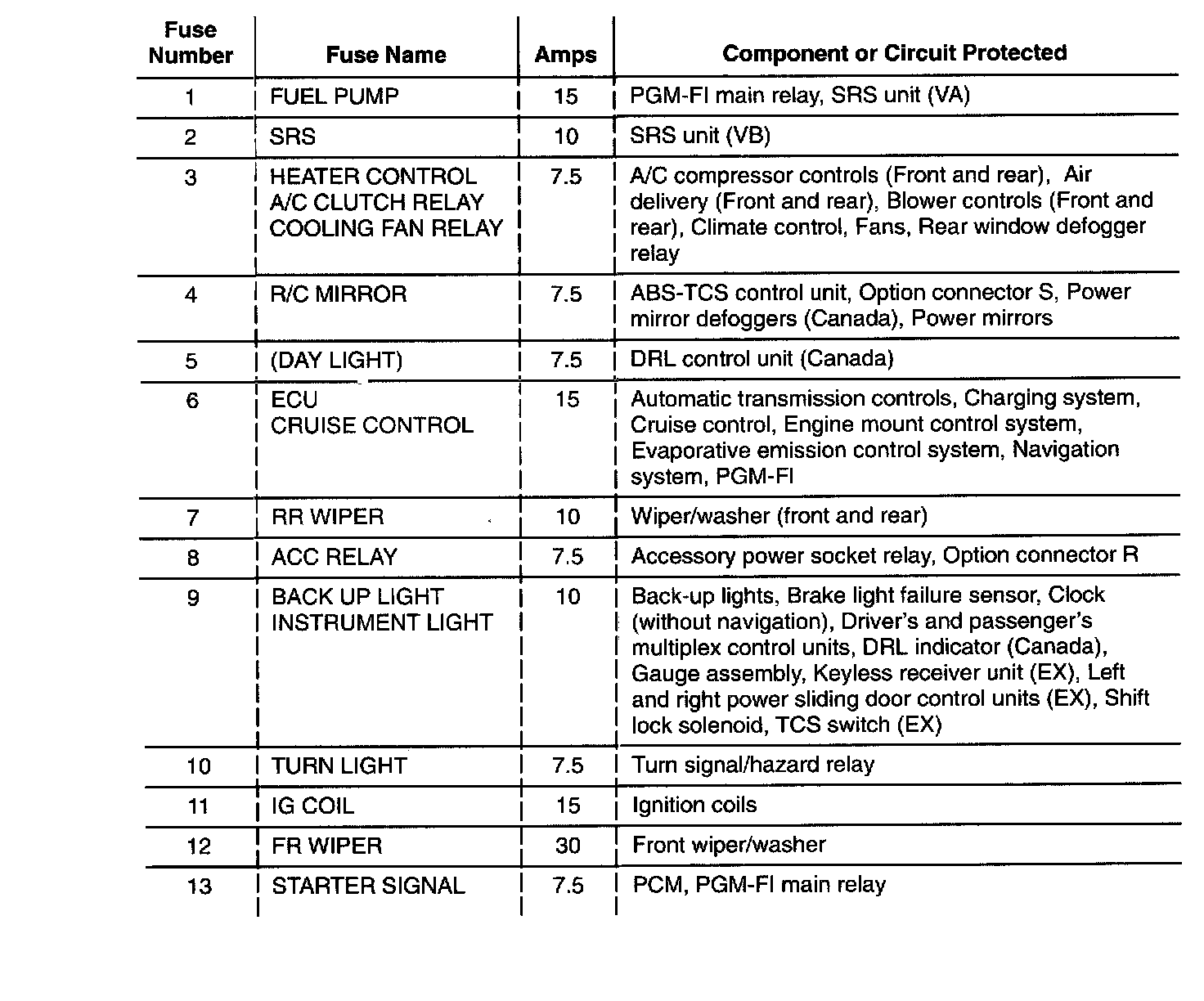 Fuse-to-Component Index:
