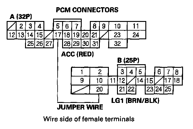 8. Momentarily connect PCM connector terminals A17 and B20 with a jumper wire several times.
