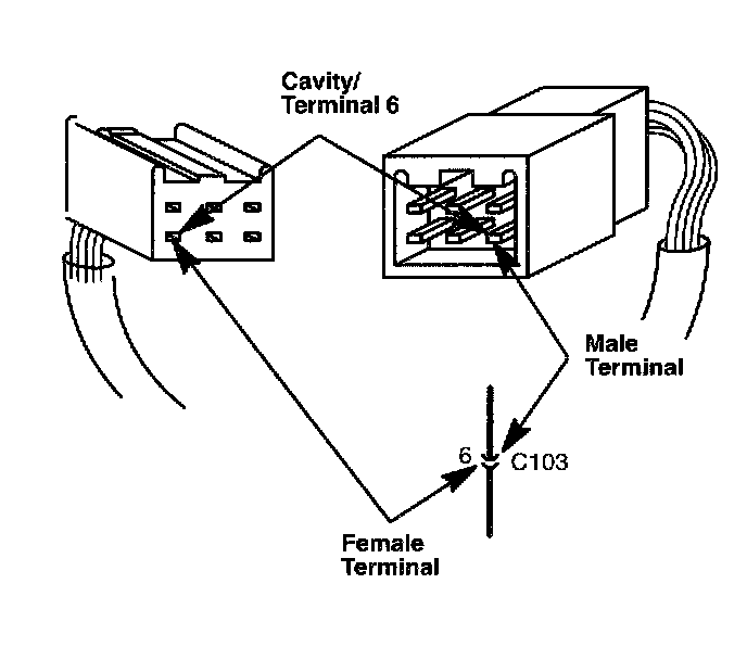 The connector cavity number is listed next to each terminal on the circuit schematic. The cavity/terminal shown is # 6.
