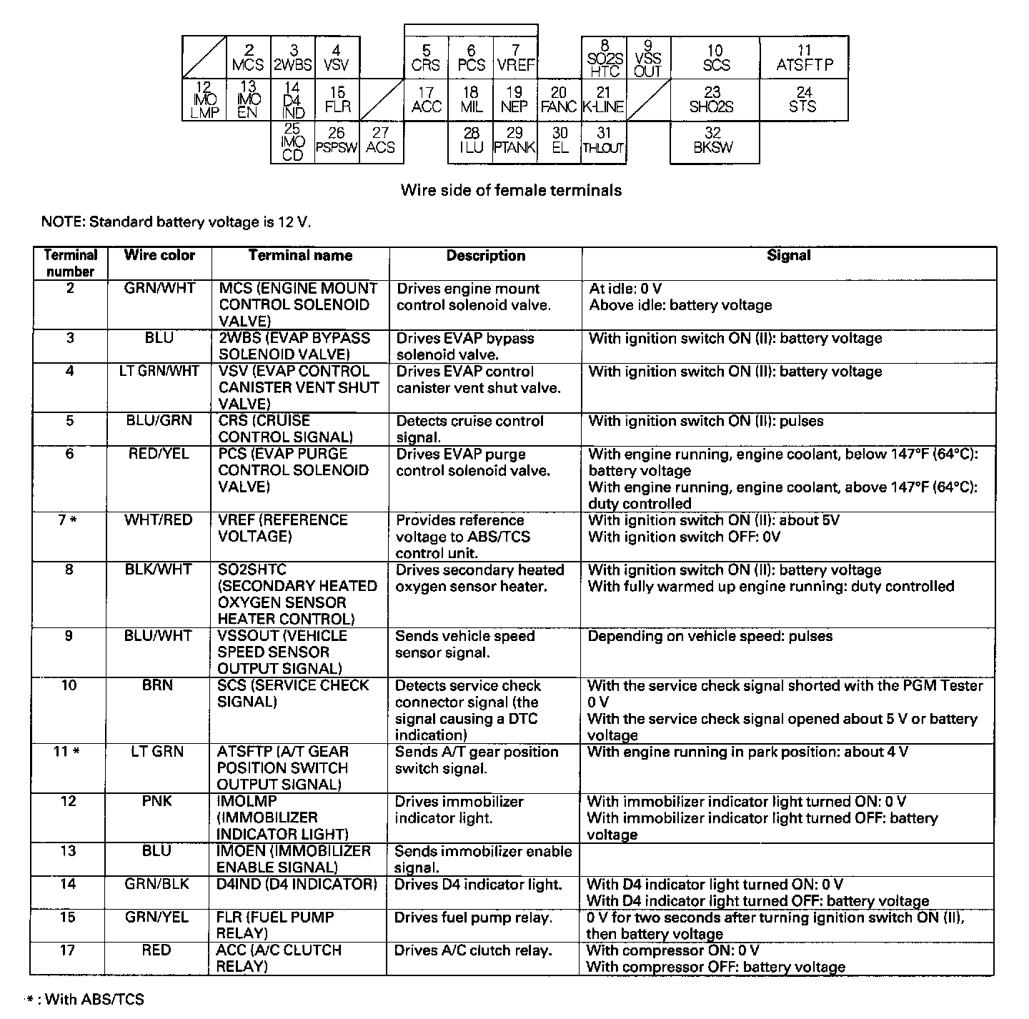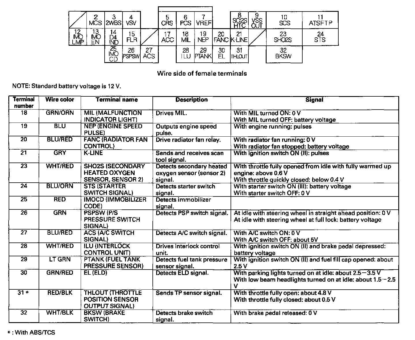 PCM CONNECTOR E (12P) (With ABS/TCS):